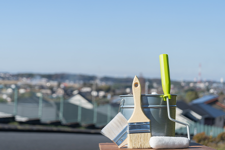 防水塗装とは、ベランダや屋根の防水機能を高めるための塗装です。防水性の高い塗料を使い、厚い層になるように塗装していきます。